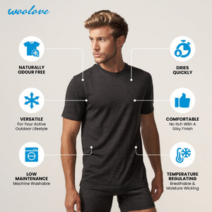Thanks to its natural moisture-wicking (Thermoregulating) properties, Merino Wool will help regulate your body temperature, keeping you cool in the summer and warm in the winter, so you stay dry and comfortable. Plus its anti-microbial which means it will remain odour-free even after multiple consecutive wears