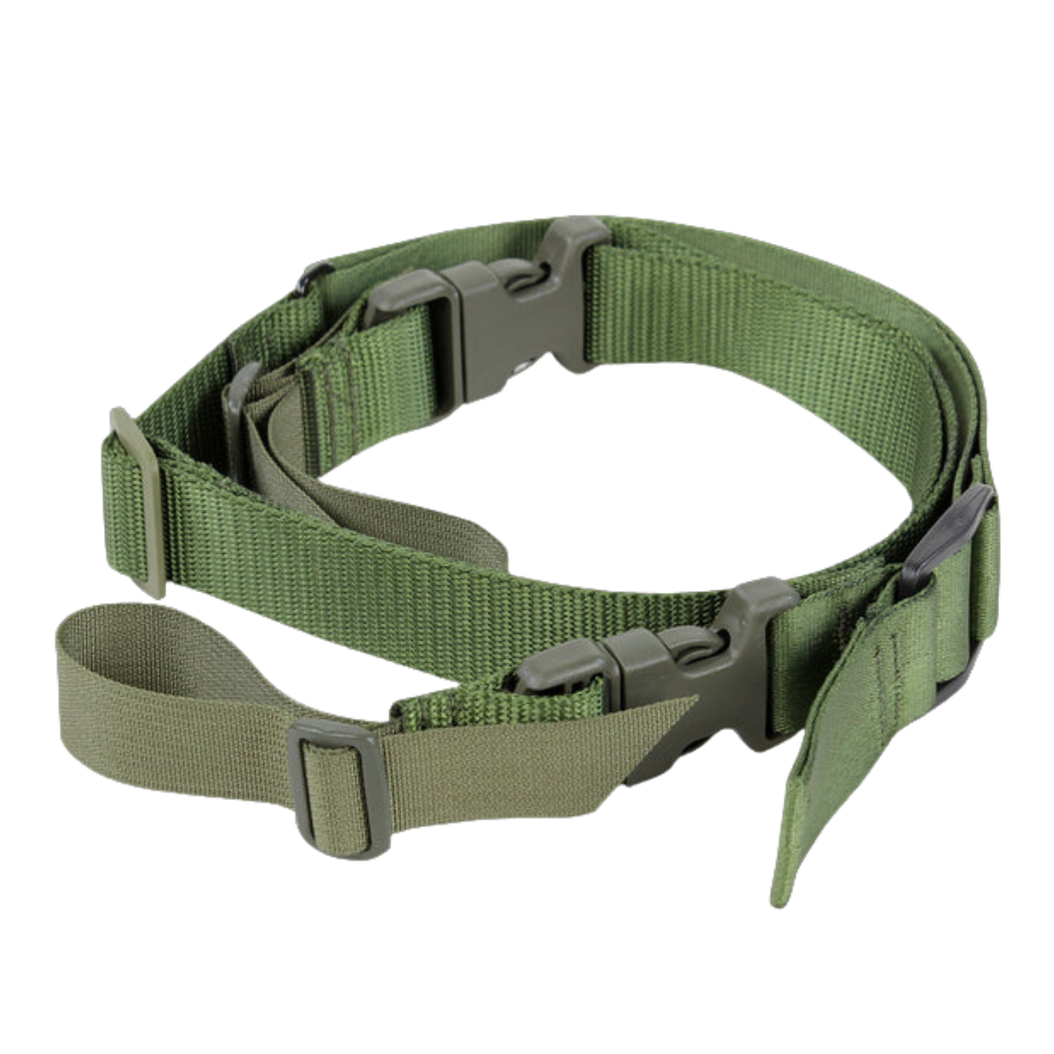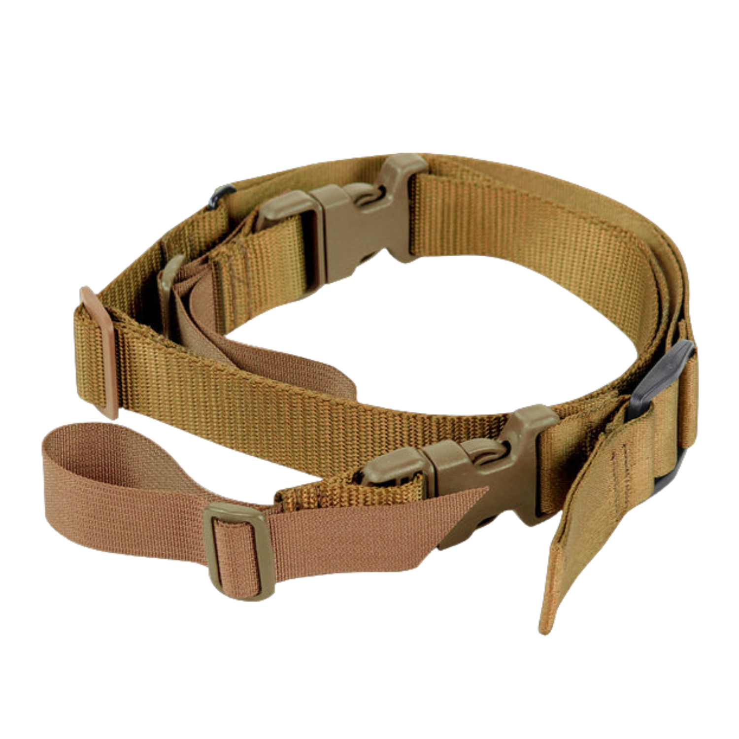 Keep your firearm safely strapped on with the Speedy Two-Point Sling from Condor Outdoor. This 2-point sling delivers the rapid access you require to be ready at a moment's notice. The quick-release buckles are designed to release the strap adapters swiftly and smoothly. The adjustment features also allow for seamless shoulder transition. In addition, the universal strap adapters make it possible to use this Condor sling with firearms of varying sizes. Outdoorsmen, survivalists, and first responders appreciate that the heavy-duty 1.25" webbing is incredibly durable and comfortable enough to use for long periods of time. Sturdy yet lightweight Duraflex buckles click in securely without weighing you down. Get the Condor Speedy Two-Point Sling to keep your weapon within reach when you're on the move or positioned for action.