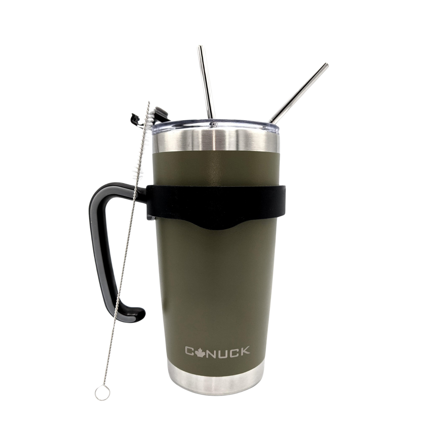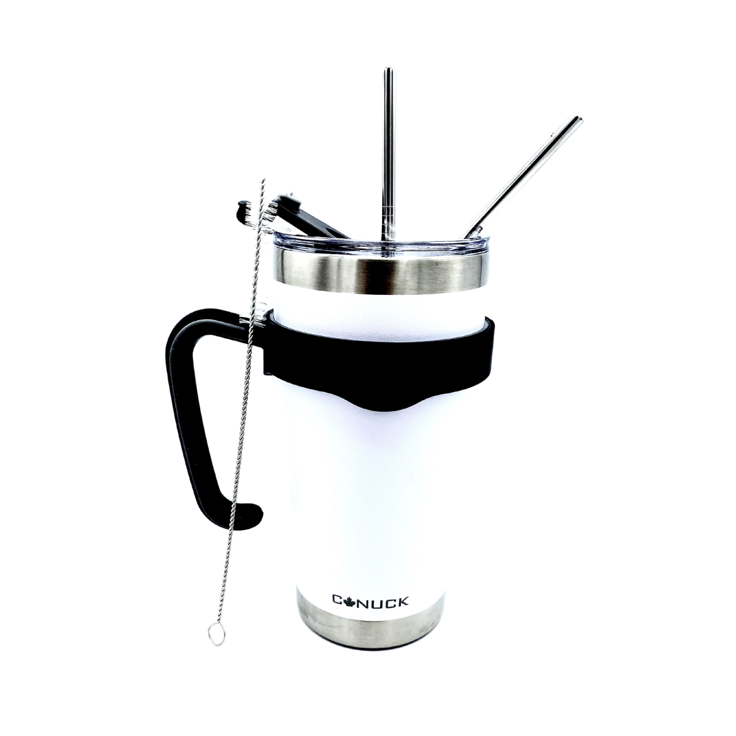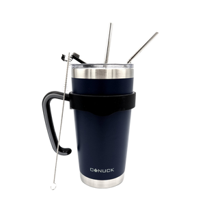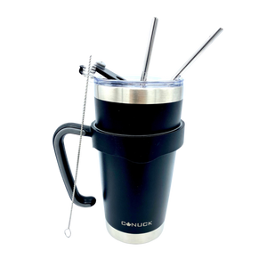Canuck Cups keep drinks cold for 24 hours and hot for 6 hours and include a carrying handle and two stainless steel straws, all in one price!