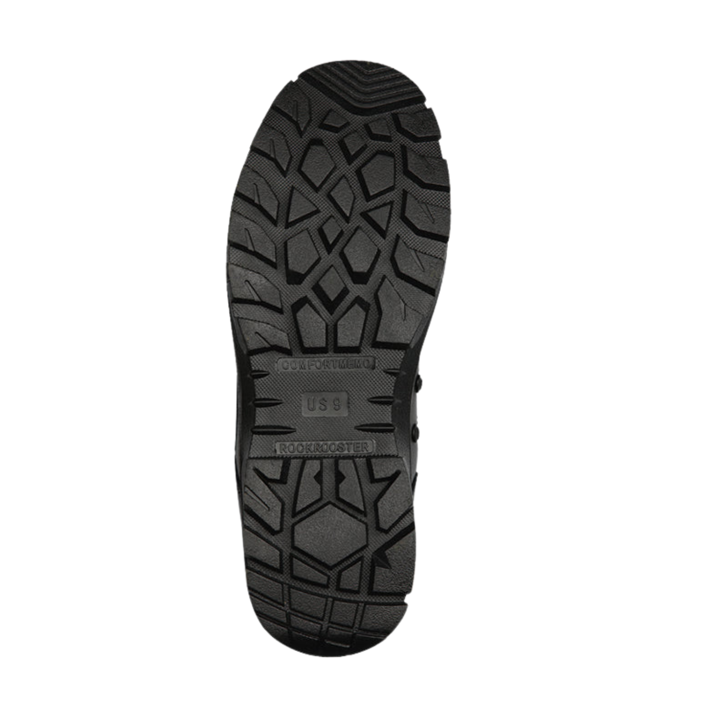 Rubber outsole with slip resistant tread that is chemical, oil, heat, and acid resistant. Heat resistant up to 500°F