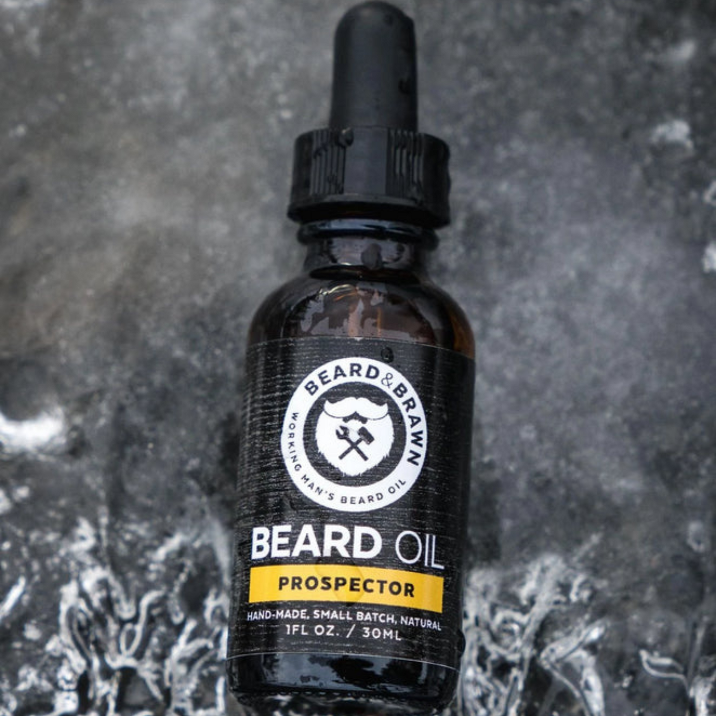 - Prospector - Whether you’re working indoors or out, Prospector is a great all-purpose beard oil and the most popular with our bearded friends. Guaranteed to strike beard oil! Ingredients - Sweet Almond, Grape Seed, Jojoba, Argan, Castor, Apricot and Coconut carrier oils. Patchouli, Bergamot, Lavender and Black Pepper essential oils.