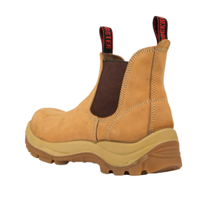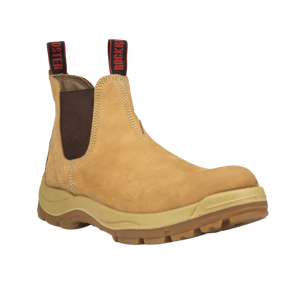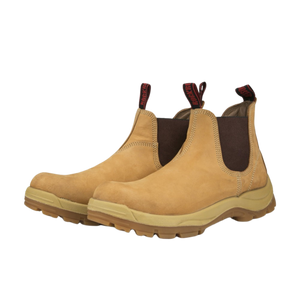 Rock Rooster Men's 6 inch Tan Pull on Work Boots, Composite Toecap, Slip Resistant, Electrical Hazard Protection, Rubber outsole, ASTM 2413-11