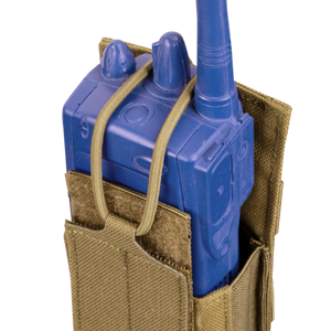 The pouch may be attached directly to the uniform when a MOLLE webbing system is present and a simple bungee cord retention system that allows for rapid access to the radio when required.