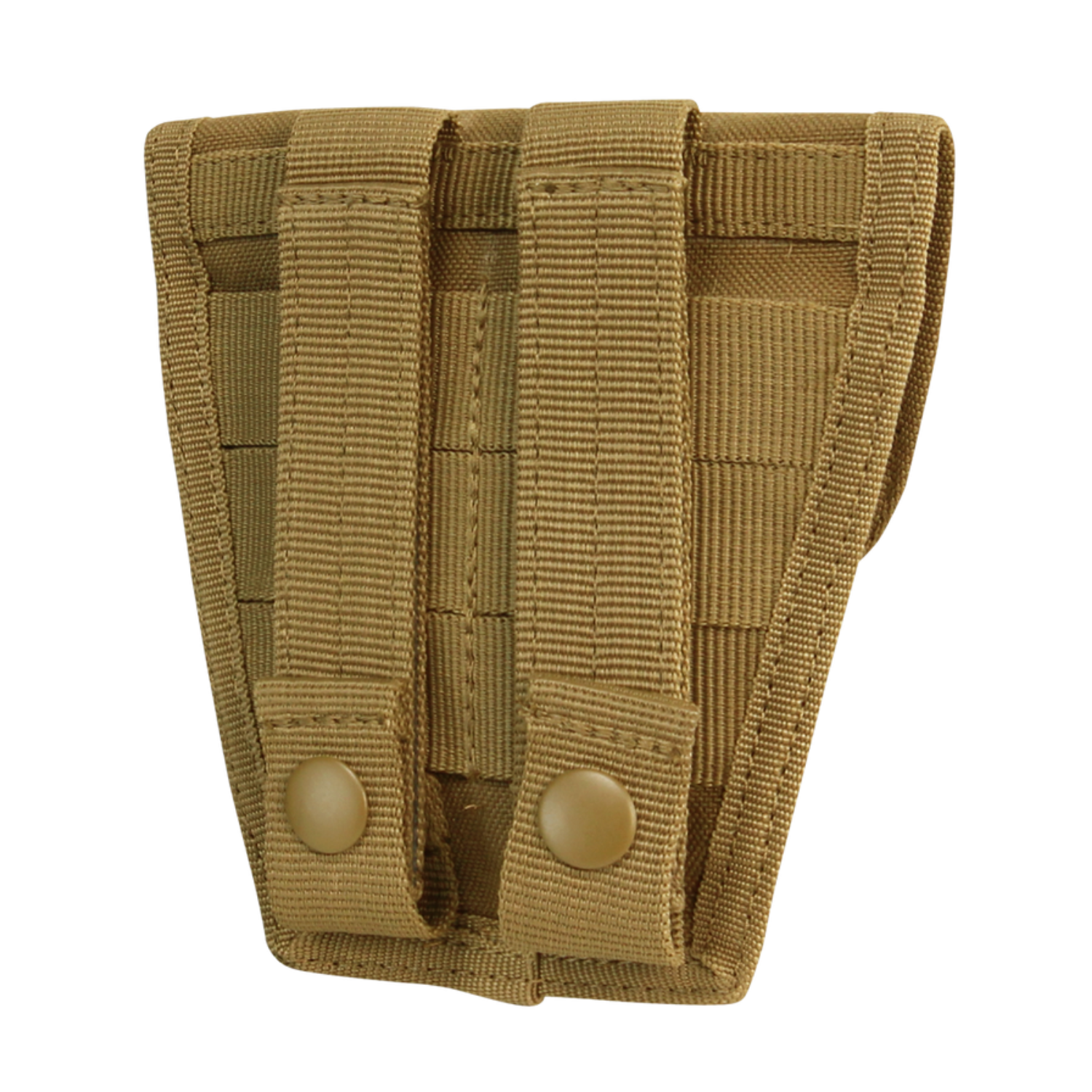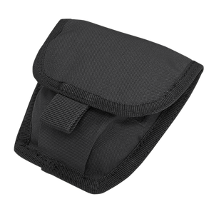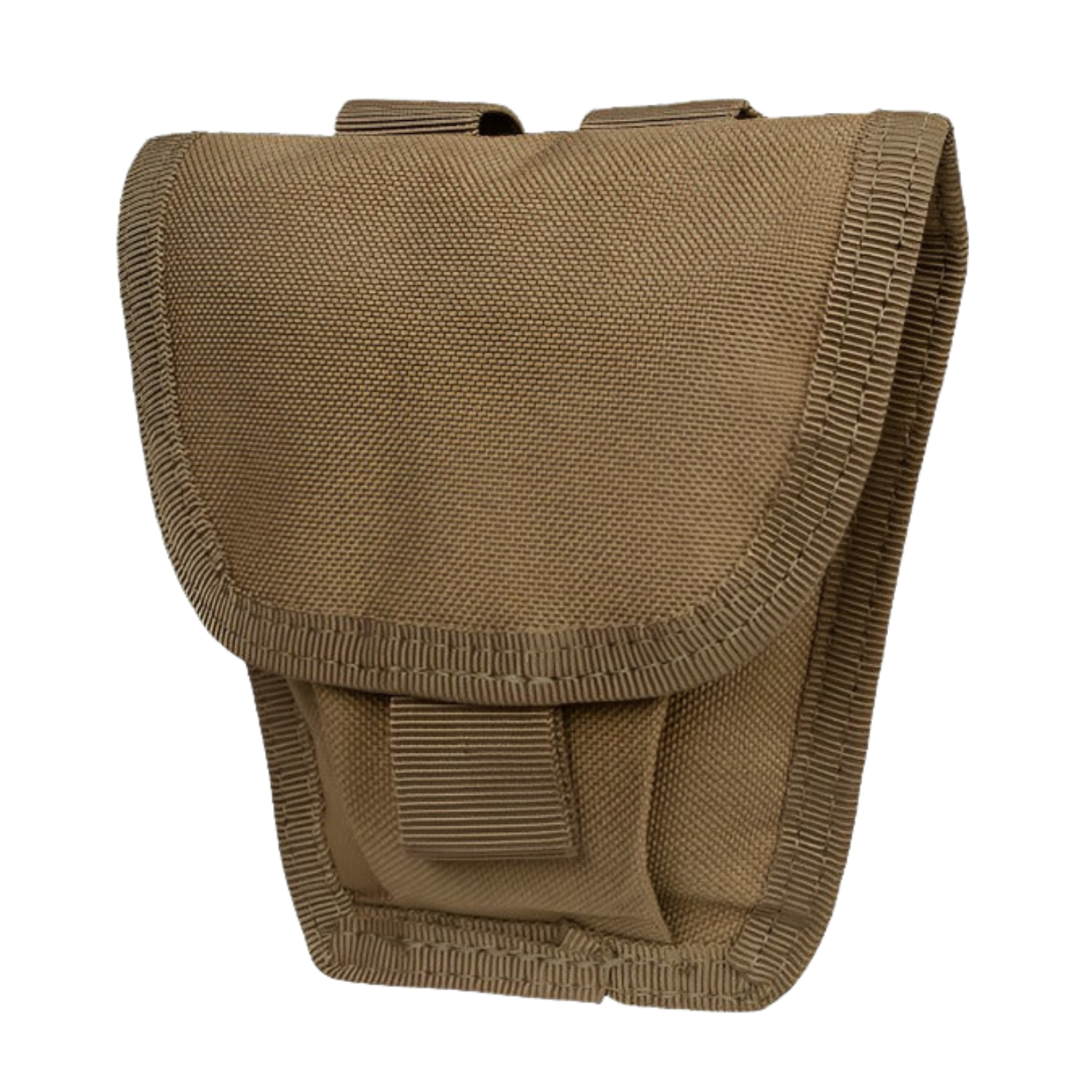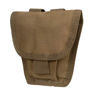 The pouch is discreet and protective, with a hook and loop closure that allows for one-handed access. The pouch is designed for multiple carrying styles, including on MOLLE webbing, on a belt, or attached to a carabiner.