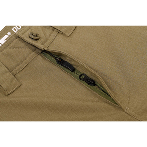 - Double zip front fly for access with a gun belt