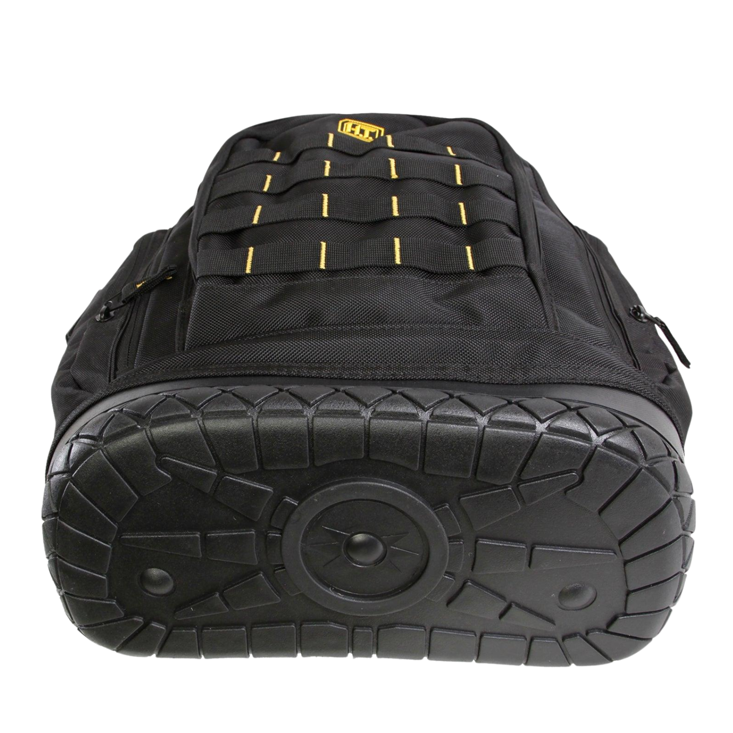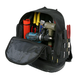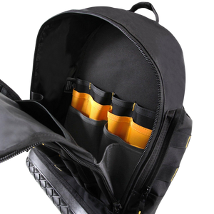 This lightweight tool backpack has a reinforced, heavy duty bottom to ensure your tools stay firmly in place. There’ll be no holes at the bottom of this tool bag! The molded plastic bottom keeps your bag and your gear dry. With its upright design and vertical tool compartments this bag ensures that your tools are organized, handy, and easily accessible at all times.