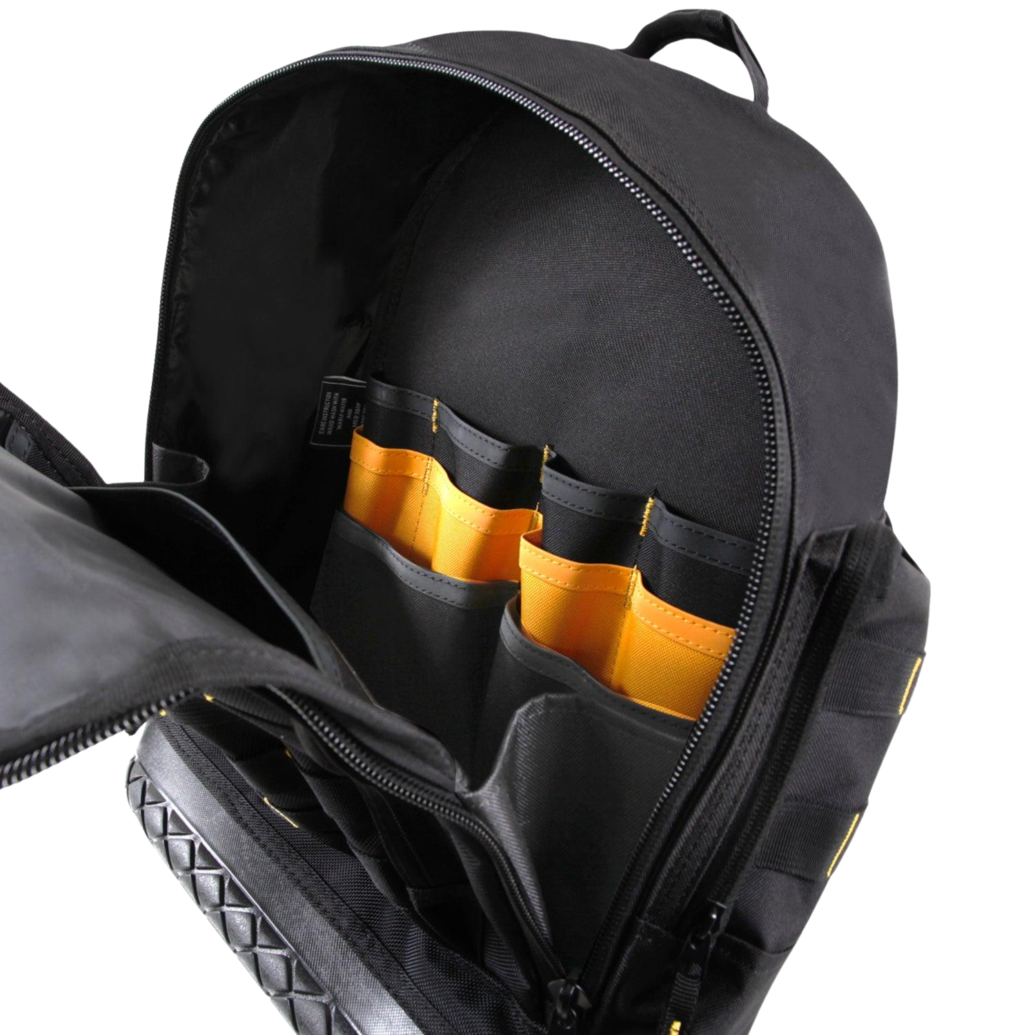 All pockets are large and varied, making it easy to store the tools you need and any extras that you like to have on hand. Plus, this backpack includes breathable mesh straps for added comfort.