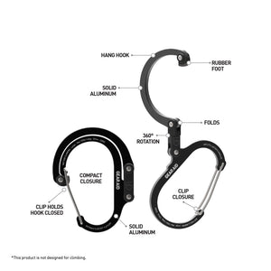 The ideal size for your larger gear needs, Heroclip Large lets you hook and hang up to 100lbs wherever your adventures take you. An impressive 40% larger than our Medium clip, Heroclip Large is the ideal choice for sizeable items including kayaks, floodlights, backpacking packs, and paddleboards. This large hybrid-style clip lets you hook, hang, and carry heavier gear to keep it off the ground.