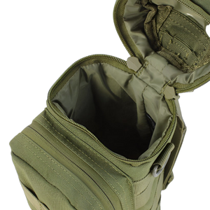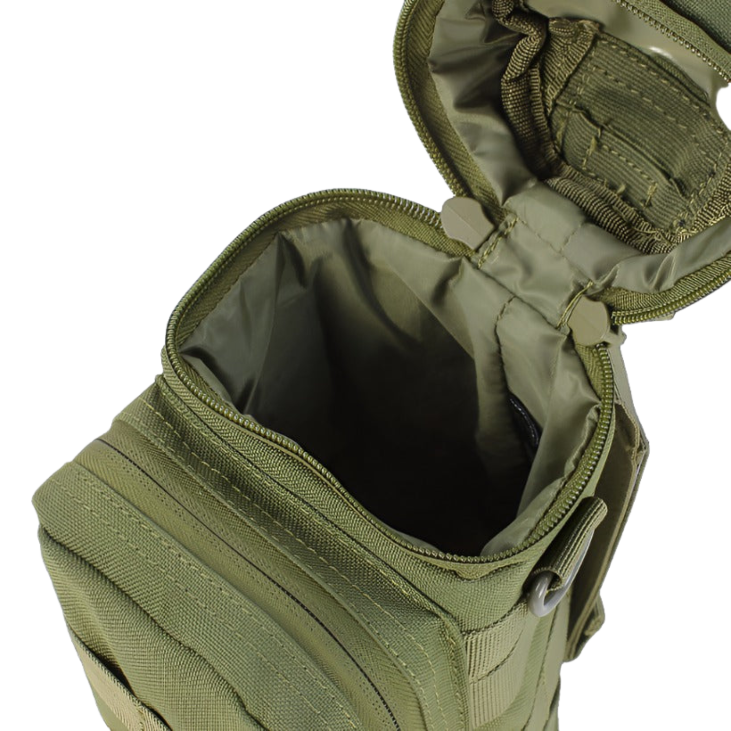Make sure you're hydrated and ready to tackle any mission or outdoor activity with this Condor water bottle pouch. The Condor H2O Pouch is designed for you to carry your water bottle hands free by using a shoulder strap, belt, or modular webbing. The padded main compartment keeps your water bottle secure with a zippered top closure. This water bottle holder also features a hydration tube pass-thru, allowing you the option to enjoy hands-free hydration while you're on the move. The front utility pocket features a secure zipper closure and can be used to carry additional accessories or supplies. With heavy-duty webbing for modular attachments, this MOLLE water bottle pouch is compatible with a variety of gear, including backpacks and belts. The H2O Pouch from Condor Outdoor offers a versatile option for storing your water nearby.