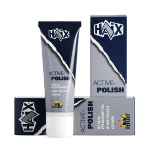 Our black Active Shoe Polish is specially formulated for the care of your HAIX® footwear. Condition and restore your boot back to its original luster with our silicone-based black boot polish. Apply black shoe polish regularly to maintain the breathability and waterproofness of our thicker bullhide leather (wax or petroleum-based polishes can plug pores reducing the breathability and minimize our Sun Reflect technology, which helps our leather stay cooler).