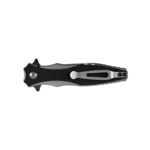 The flipper itself is mirrored by a symmetrical protrusion on the back side of the knife, providing a short crossguard to keep fingers safe.