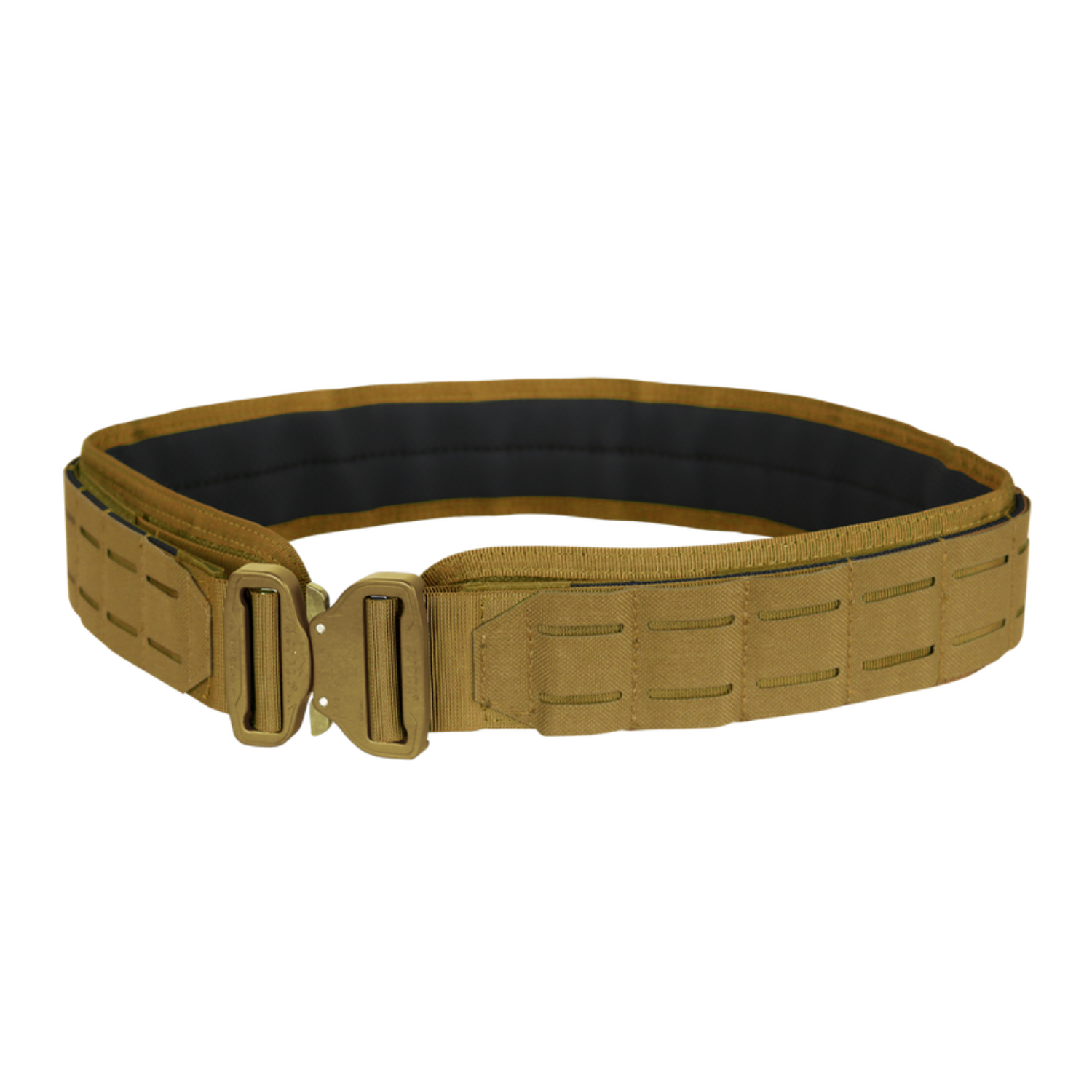 The CONDOR LCS Cobra® Gun belt is the latest addition to our load-bearing belt family. Constructed with heavy-duty webbing and reinforced with an additional layer of scuba webbing, the Condor Cobra® belt is more than capable of handling a heavy load. It features durable two-inch Cobra® buckles by AustriAlpin™. The reinforced gun belt exterior features our proprietary LCS material with non-traditional, laser cut MOLLE slots to help stabilize or organize all of your modular attachments. The removable inner anti-slip pad provides added comfort, especially when wearing for long periods of time or particularly heavy gear. This versatile belt can be used in conjunction with an inner belt for a two-belt system or as a stand-alone belt. It's a popular shooting belt for outdoorsmen as well as first responders in training or on active duty.