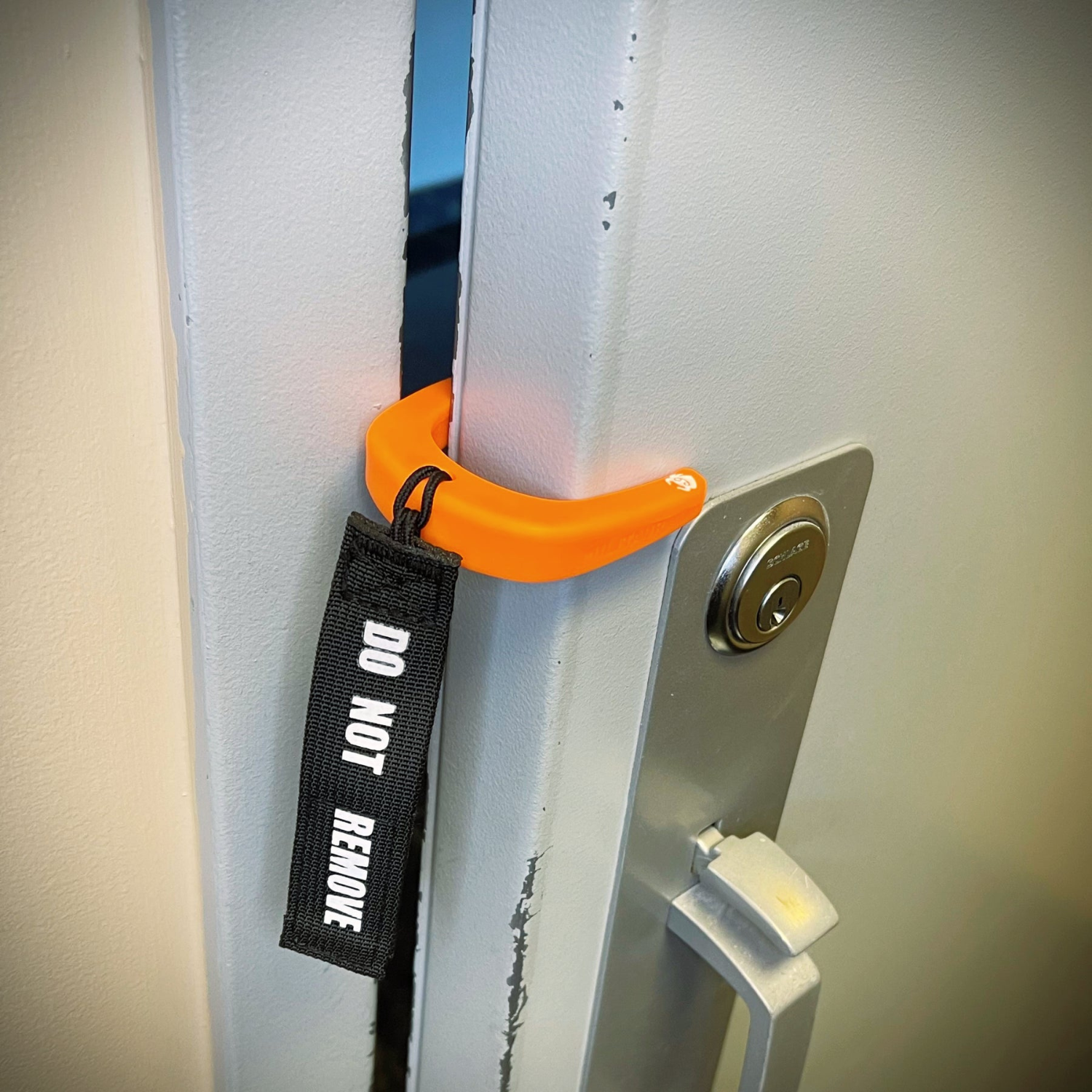 The 'Do Not Remove Strap' alerts others that the door is being held open for a reason so that you can leave the door unattended, letting your back-up or additional resources get through self-securing doors while you are dealing with your call.