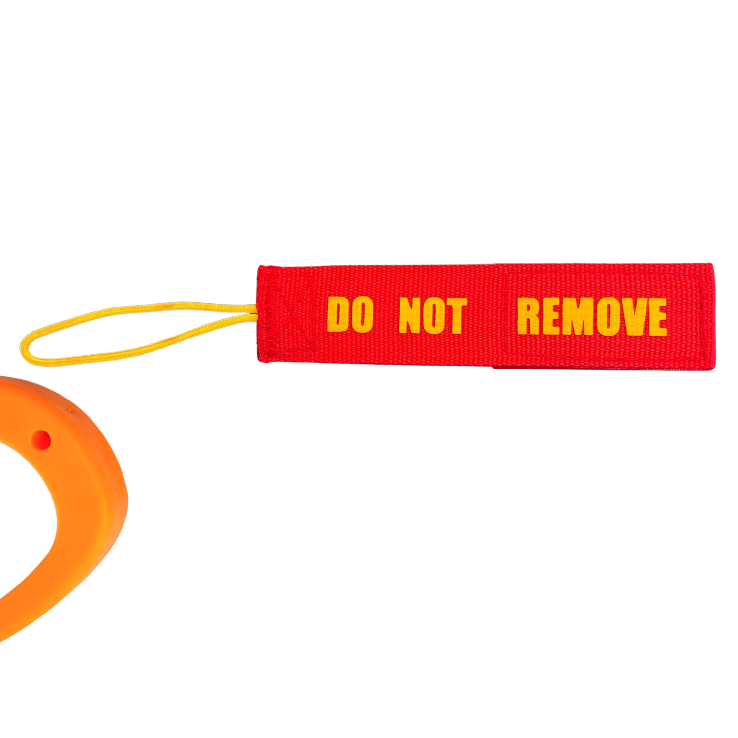 This 'Do Not Remove Strap' does not guarantee that your door stop will not walk away by sticky hands, but is a visual tool to clearly warn others to "Do Not Remove" this item.
