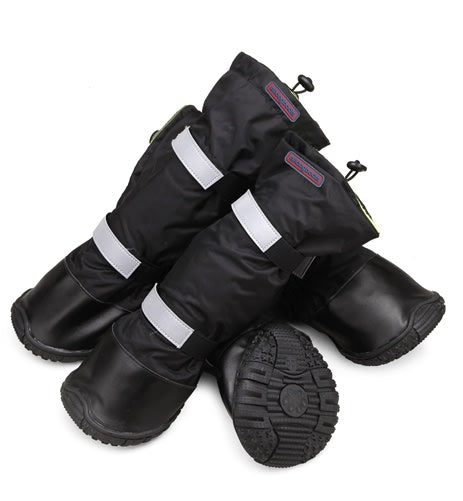 These dog boots are made for rough outdoor use. The tall design provides extra protection to the lower leg area, keeping snow and ice from getting inside.