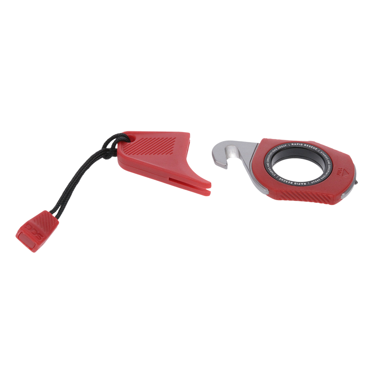 Rapid Rescue features a seatbelt cutter and glass breaker.