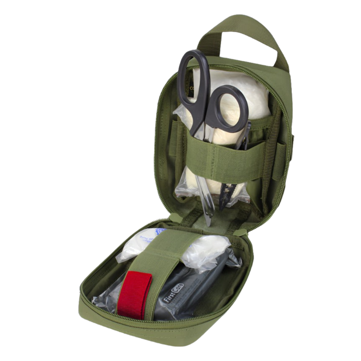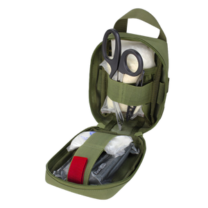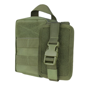 Easily access medical supplies in an emergency with the Rip Away EMT Lite Pouch from Condor Outdoor. The Condor EMT Lite is the redesigned personal version of the MA41 Rip Away EMT Pouch, which was intended to treat multiple patients. This bag's compact design is perfect for storing a complete first aid kit (IFAK) for a single person. Additionally, the outside MOLLE webbing can be used to secure various modular attachments, chem-lights, tourniquets, and other helpful accessories. Prompt deployment is a priority with this medical bag's design, which includes a grab handle for tear-away transfers or loadout switching as well as a rapid access pull tongue to open the pouch. A hook and loop panel can be used to display an ID, and the zipper closure has dual sliders that secure your supplies within. Use this Condor EMT Lite first aid bag to keep medical essentials safely stored in a space-conserving kit.
