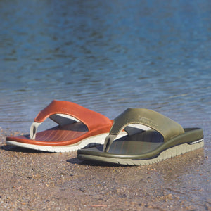 These premium sandals feature a cowhide leather footstrap and footbed, providing superior posture support and a custom fit. The sculpted geometry supports foot anatomy for maximum comfort and all-day wear. The thermoformable foam footbed allows for user-specific fit, perfect for hammered feet.