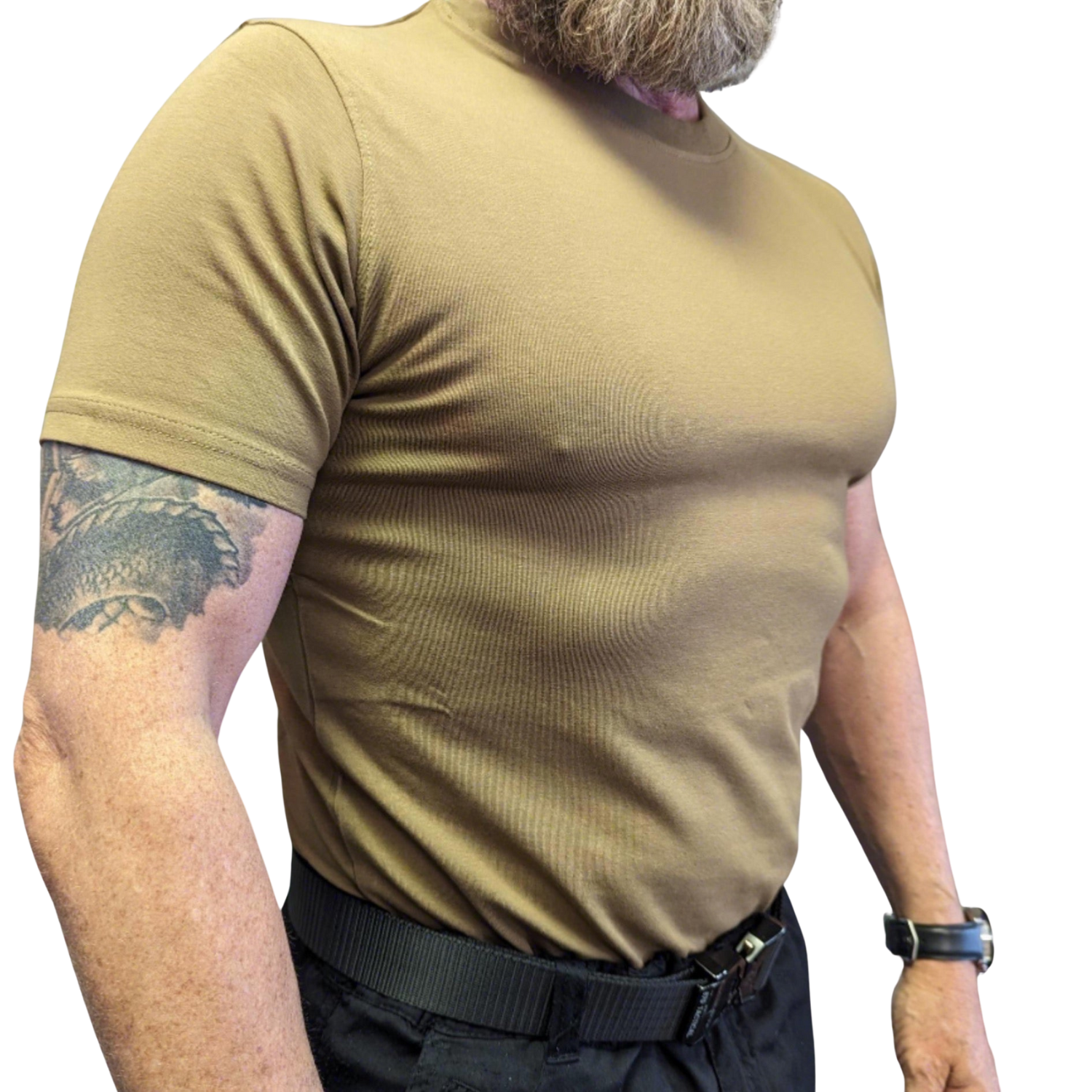 Enjoy the perfect fit and feel of this soft cotton T-shirt. Perfect for use as an under layer, workout shirt, or just for every day use.