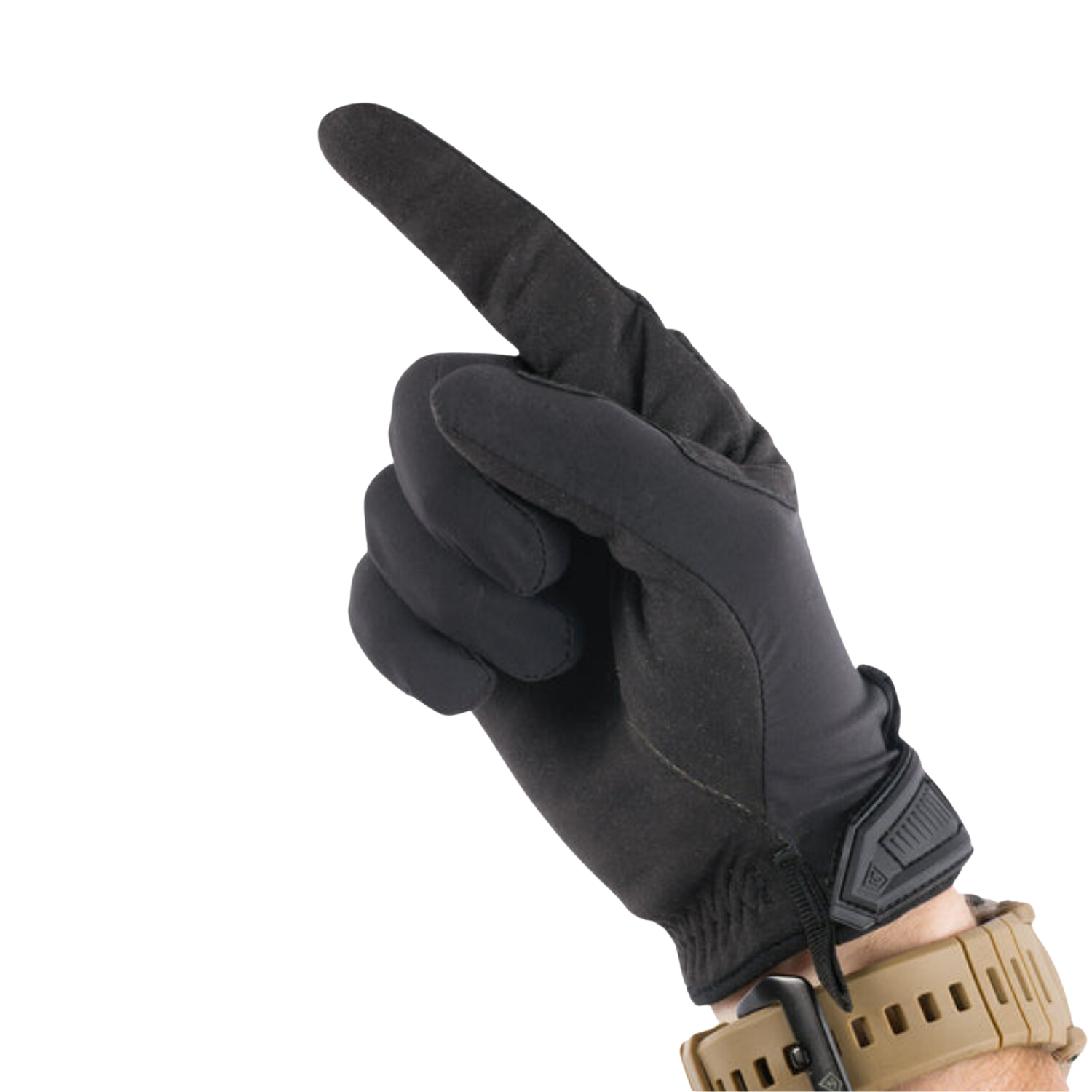 Cut Resistant Palm The Kevlar® lined palm is certified to Cut Resistance Level II and provides ease of mind to operators who are handling sharp objects while on the job. TouchTac™ Fingertip Construction The tip of the index finger does not feature Kevlar™, allowing the glove to be touchscreen friendly and more sensitive than ever before. First Tactical's Precision Fit Lightweight snag proof stretch woven materials allow for a precise fit and professional appearance. With First Tactical’s glove fit system based on height, not weight, you can order your recommended size with confidence.