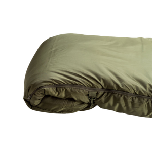 The Softie elite sleeping bag range has a built in deployable side baffle that initially is extra thick zip baffle and when deployed allows the sleeping bag to become wider. The extra space created by the deployed zip baffle allows for freedom of movement & temperature management when trying to keep cool.