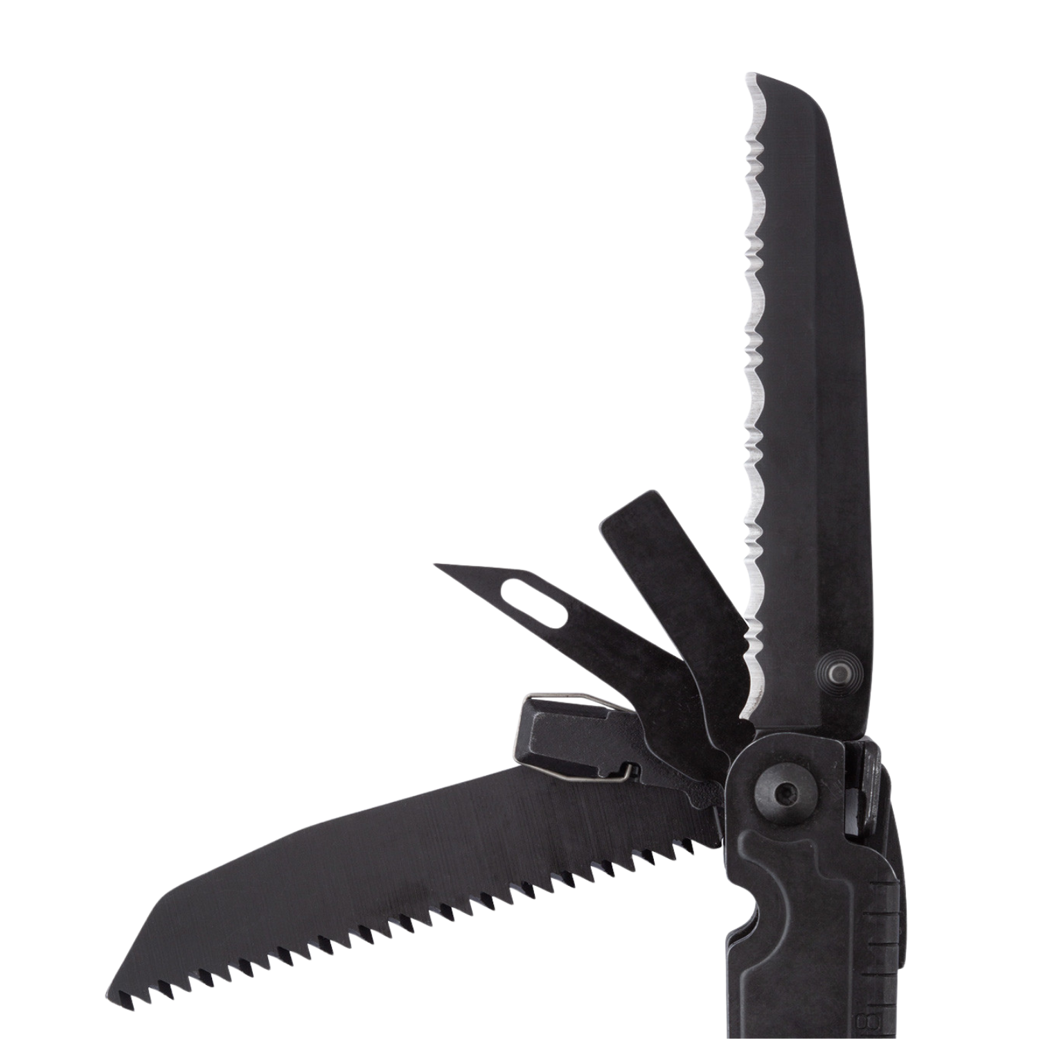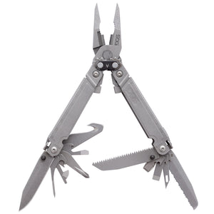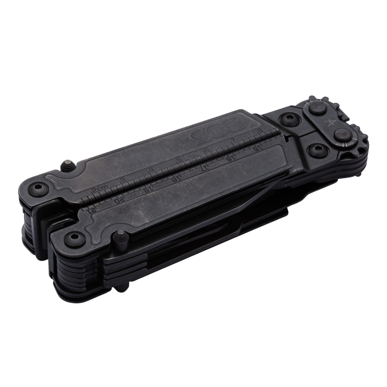 SOG’s patented gear-driven Compound Leverage mechanism features twice the cutting and gripping power of conventional pliers, with a center axis magnetic hex bit driver for enhanced capability.