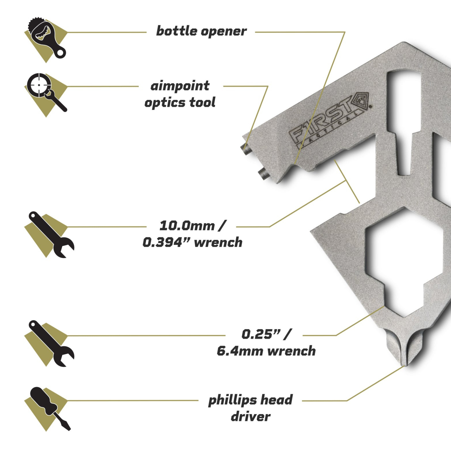 With 11 tools in one object, including a bottle opener, 4 wrenches, oxygen key and optic sight adjustment tool, the Spear gives you all the firepower you need to get the job done right.