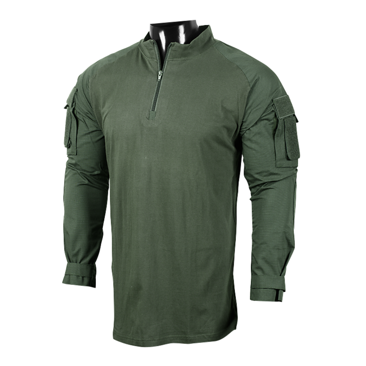 With a quarter zip front and reduced collar width, this combat shirt provides for more comfort and breathability.