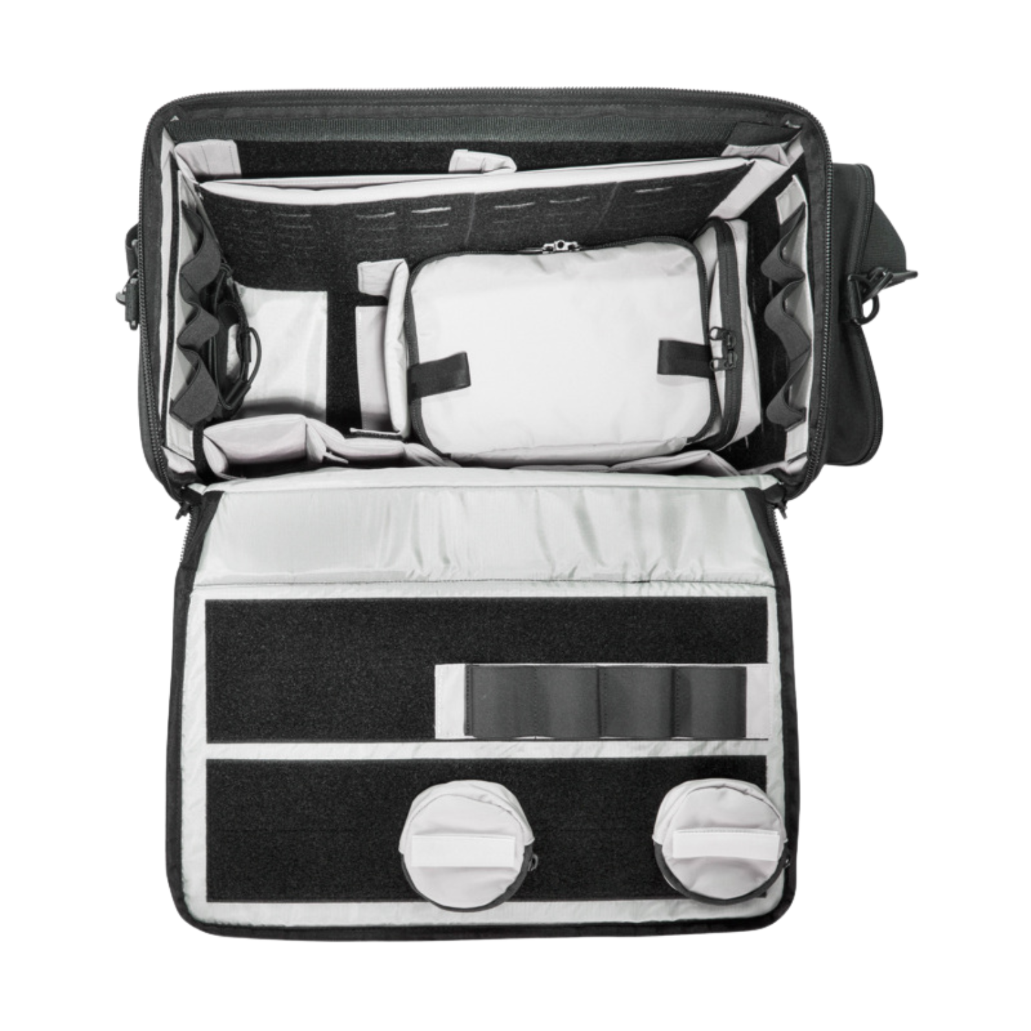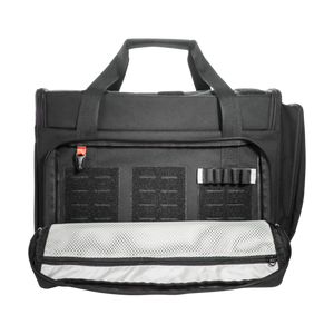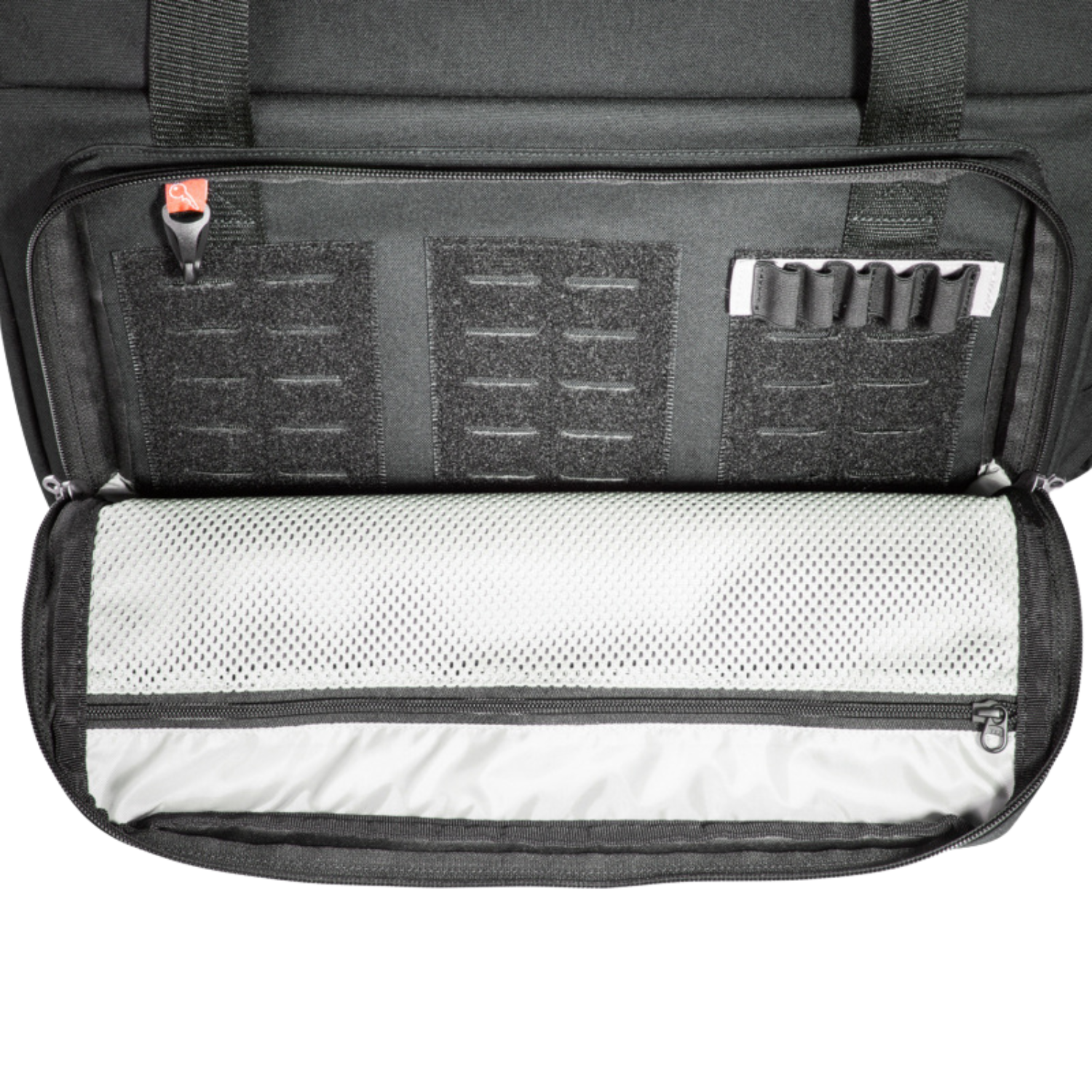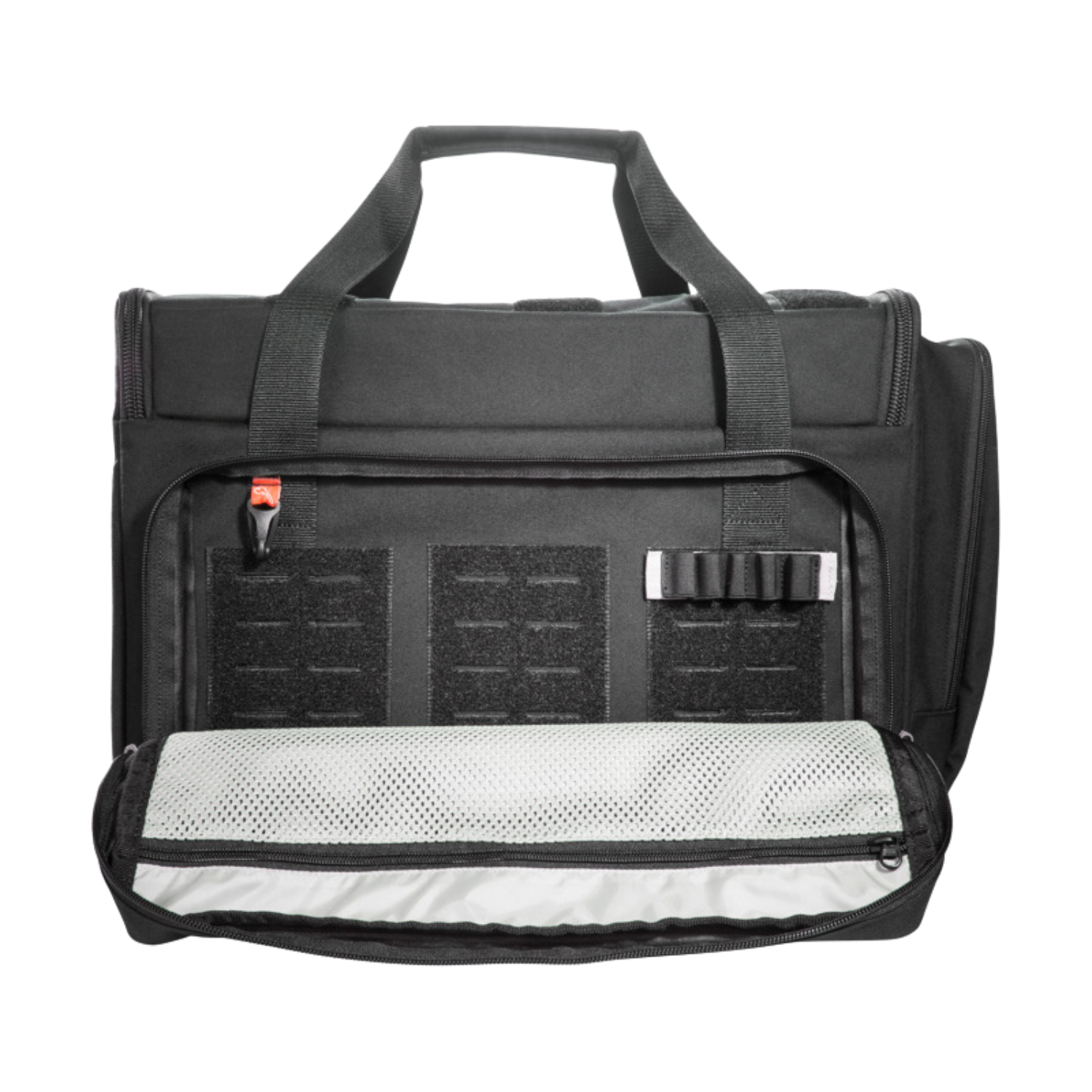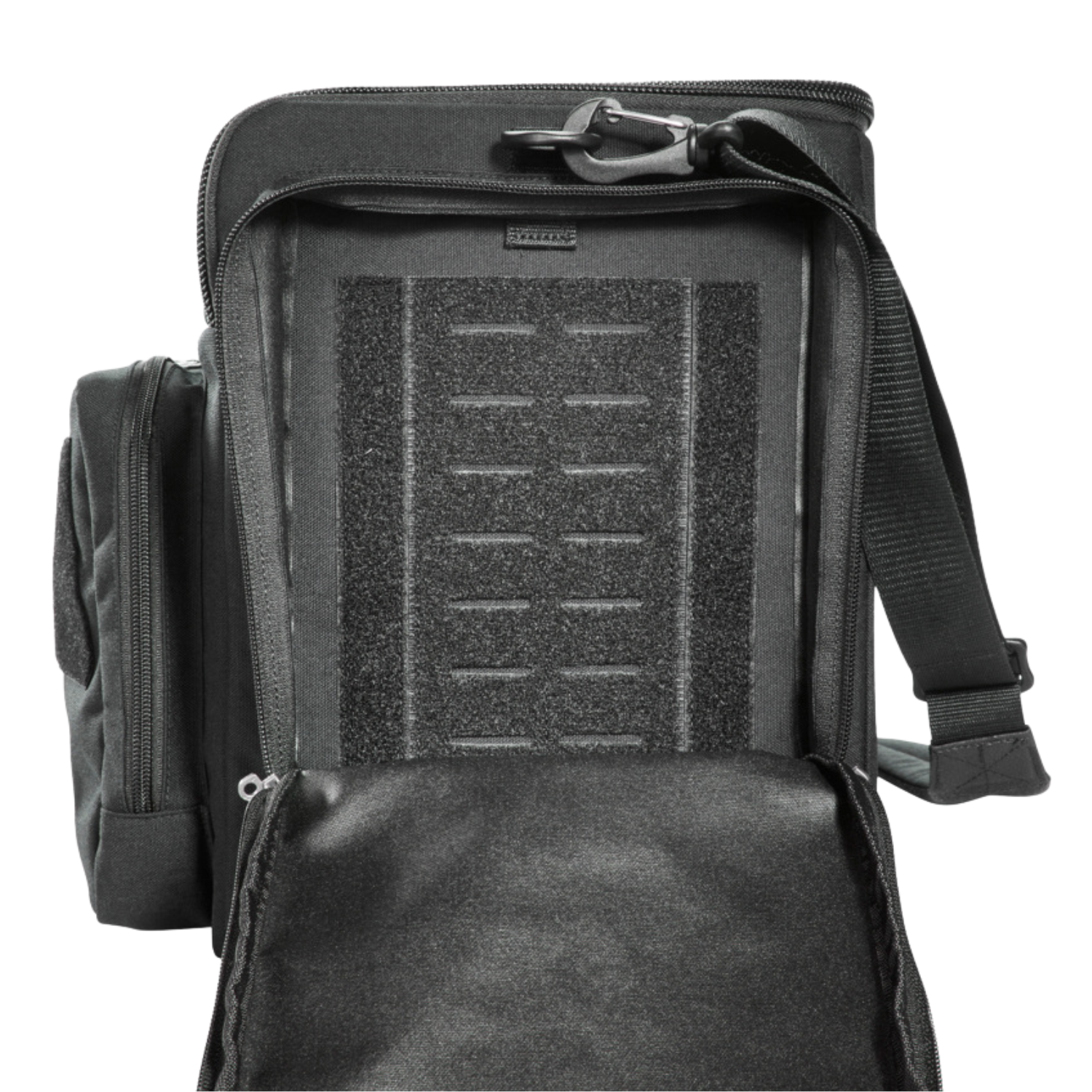 The TT Modular Range Bag has an adjustable and removable hook and loop divider system as well as hook and loop magazine and interior pocket options for munitions and accessories.