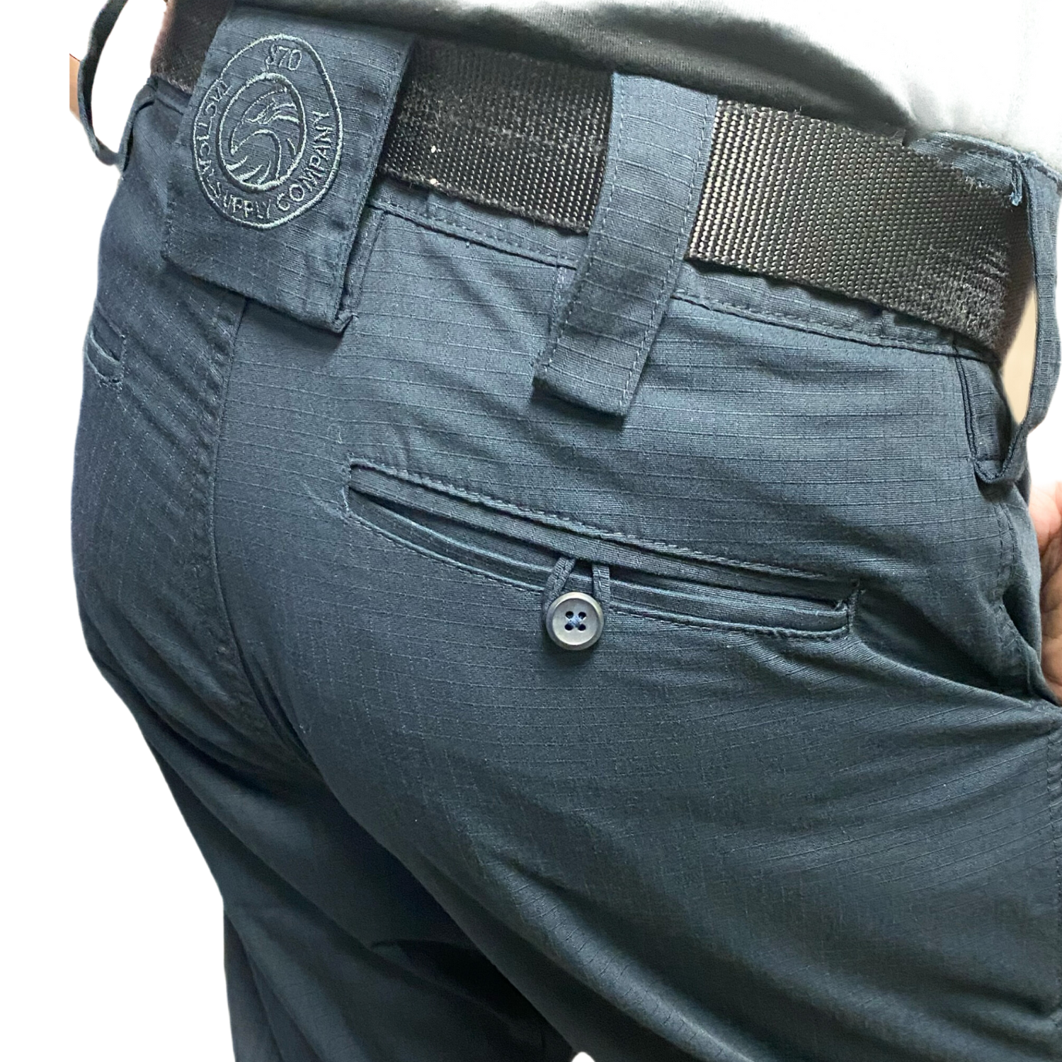 With button down rear pockets, reinforcements in strategic places, and a self-adjusting waistband, it's high-performance functionality at its finest. This pant has no side cargo pockets and is suited to a more office/dress environment rather than Tactical Security duties.