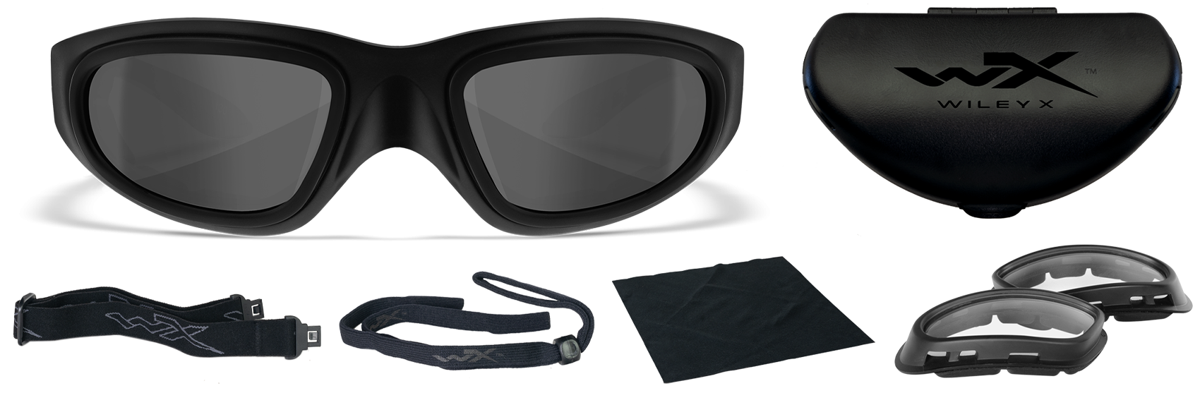 PRODUCT INCLUDES: WX Hard Shell Case, Removable Temples, SG-1 Elastic Strap, SG-1 Beaded Tactical Strap