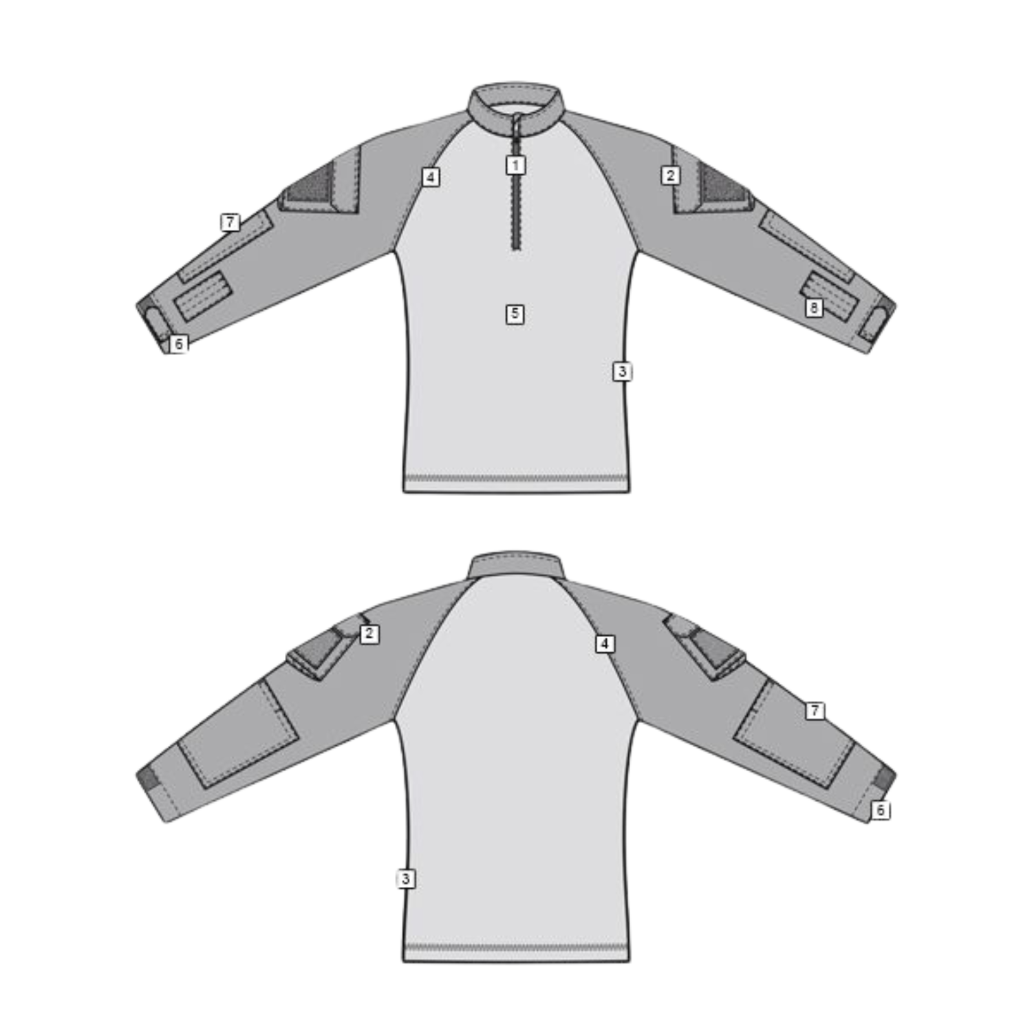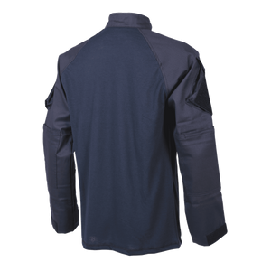 Lightweight t-shirt fabric is used for the body and underside of arms for moisture-wicking performance, while the yoke, sleeves and shoulders are constructed from a 7.5 -8oz durable FR 100% cotton woven fabric that is inherently flame and abrasion-resistant.
